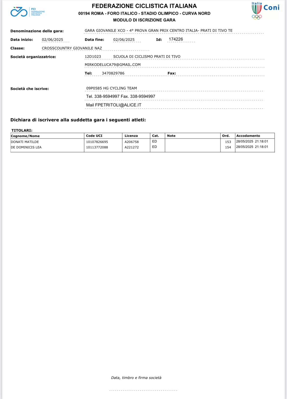 STAMPA LISTA TESSERATI